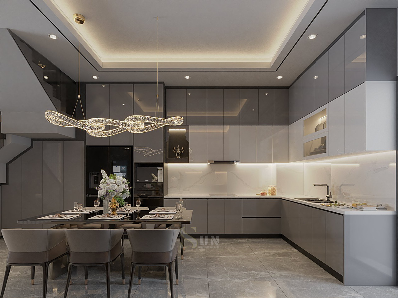 Nhìn vào gian bếp này, bạn không thấy sự rời rạc của đồ đạc. Bạn thấy một sự liền mạch đến nghẹt thở.