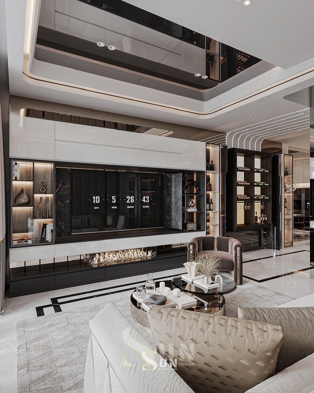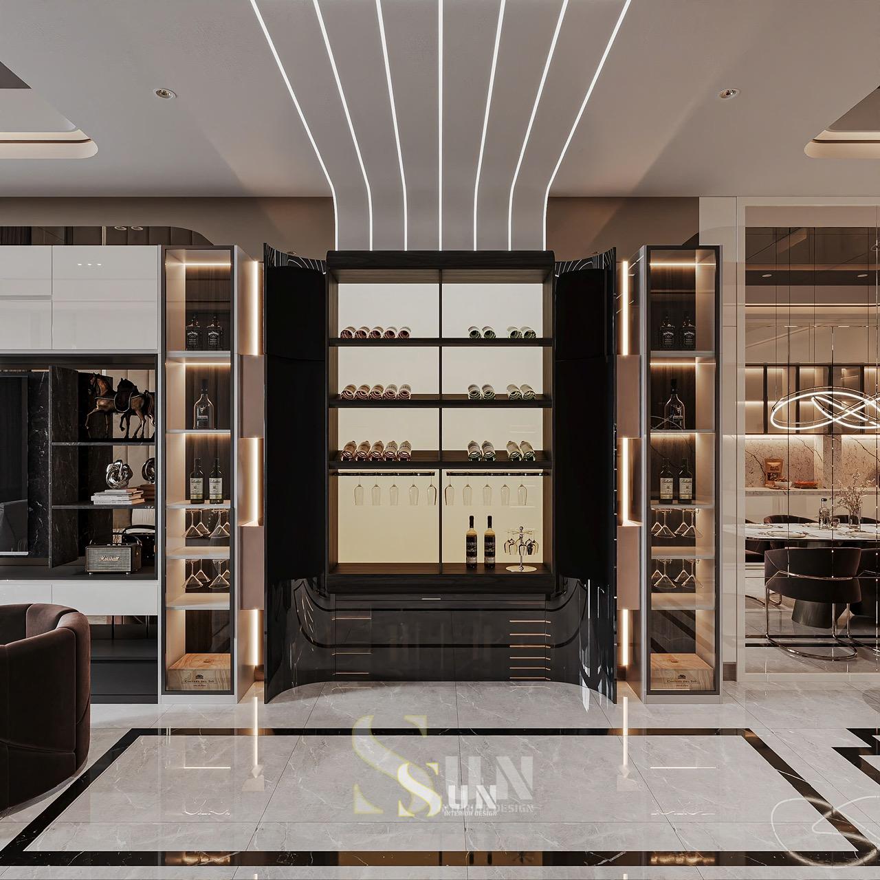 2. Hệ tủ trang trí & Tủ rượu: Nơi lưu giữ những sở thích thượng lưu