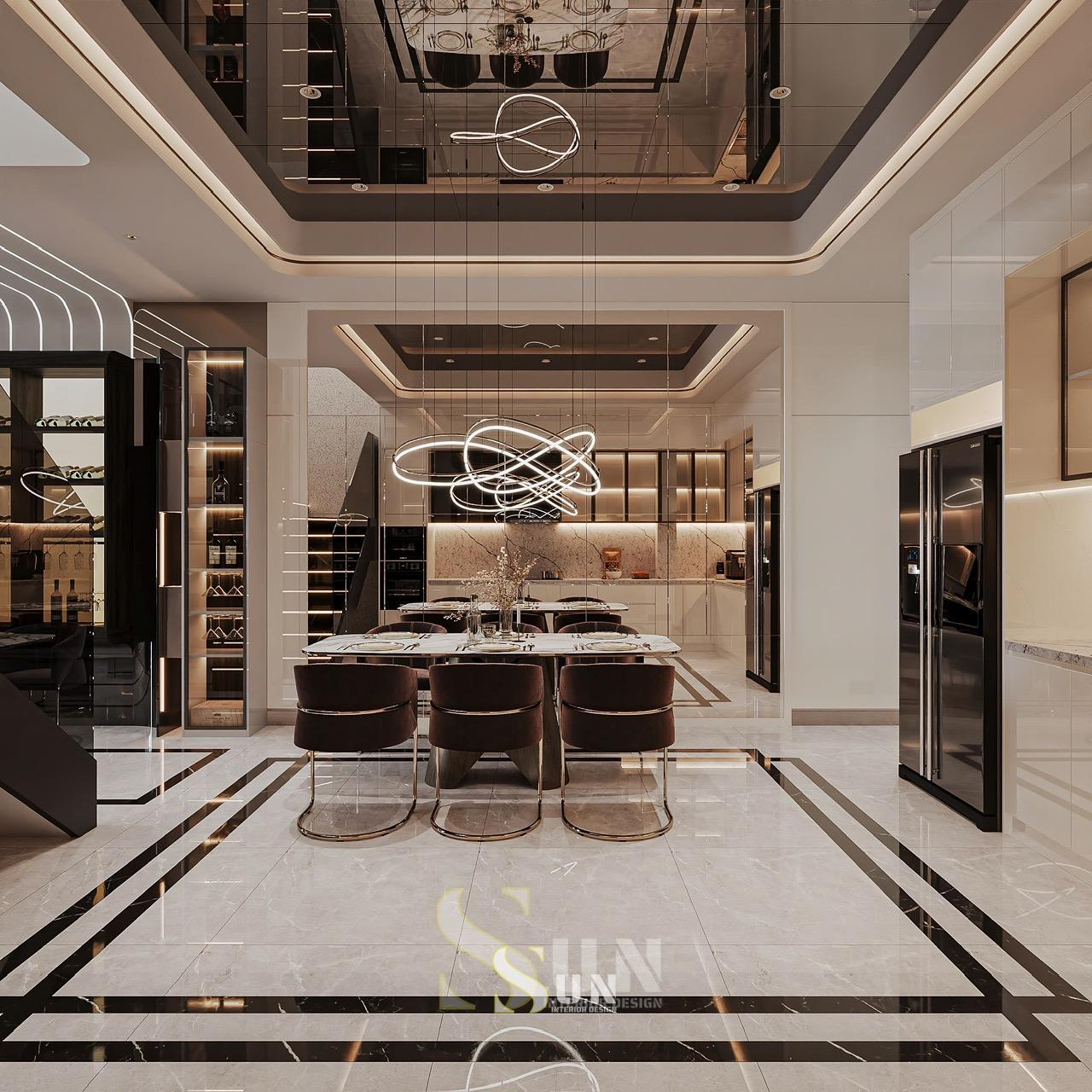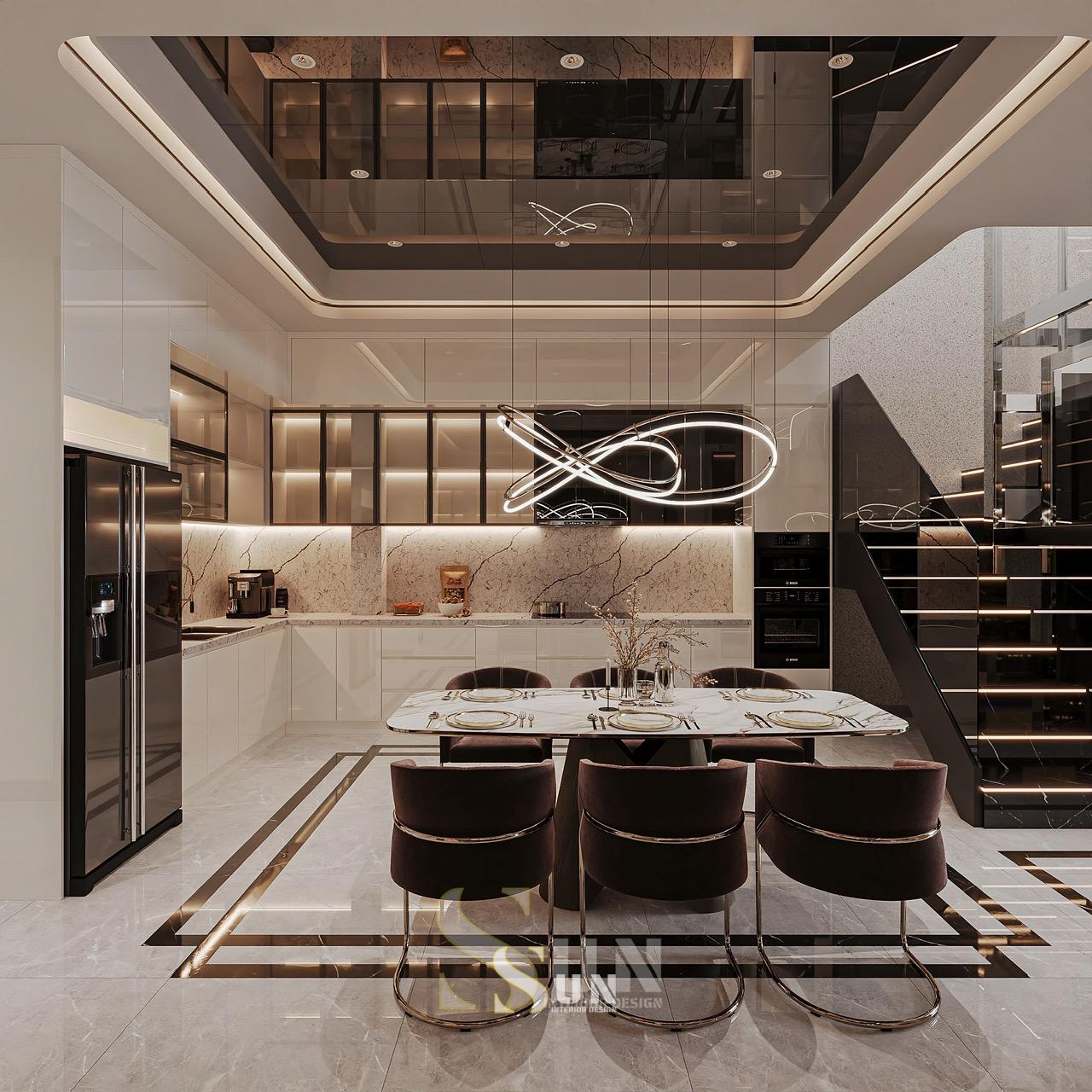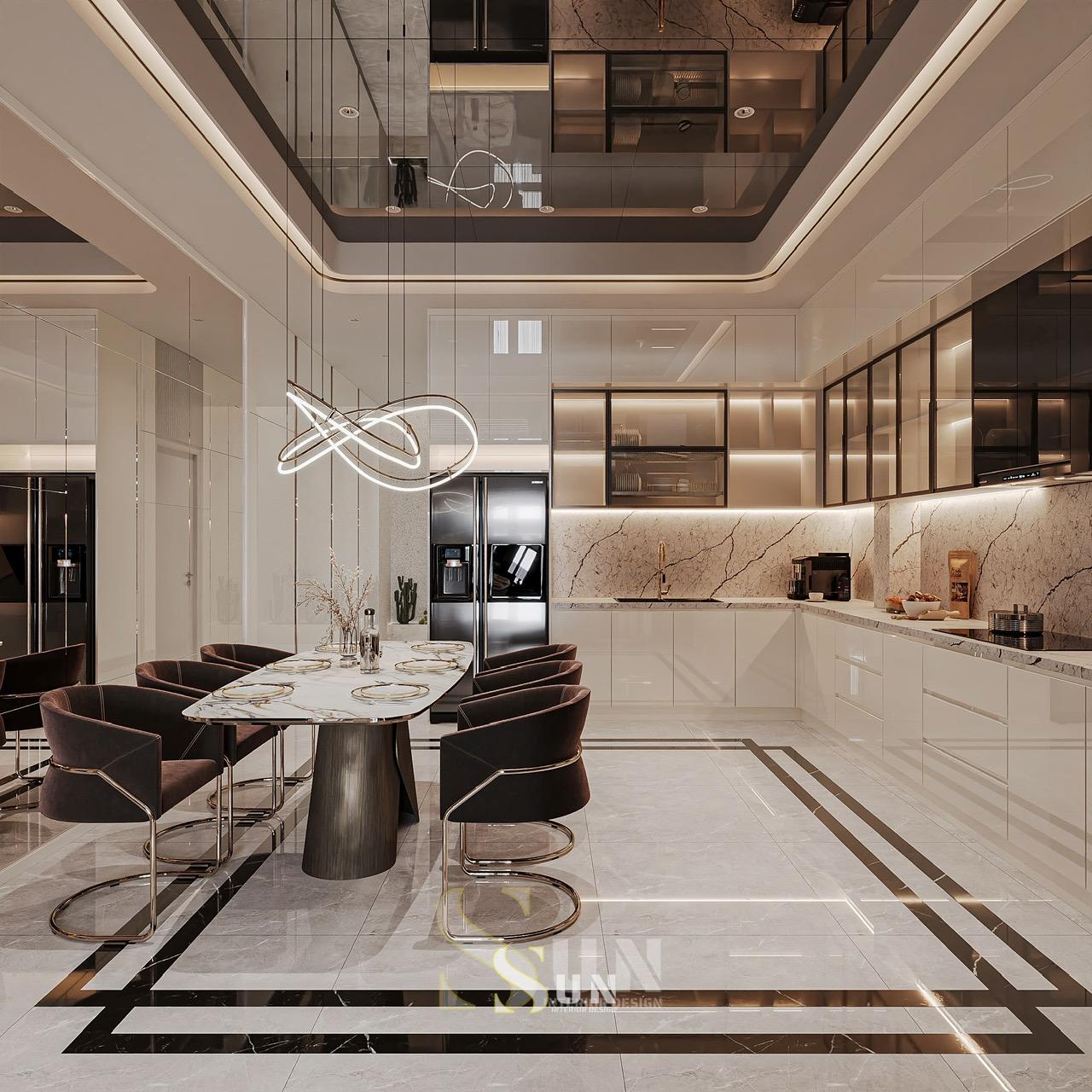 Sự liền mạch: Không gian bếp và phòng ăn được thiết kế mở, giúp dòng năng lượng và sự tương tác giữa các thành viên trong gia đình không bị ngắt quãng.