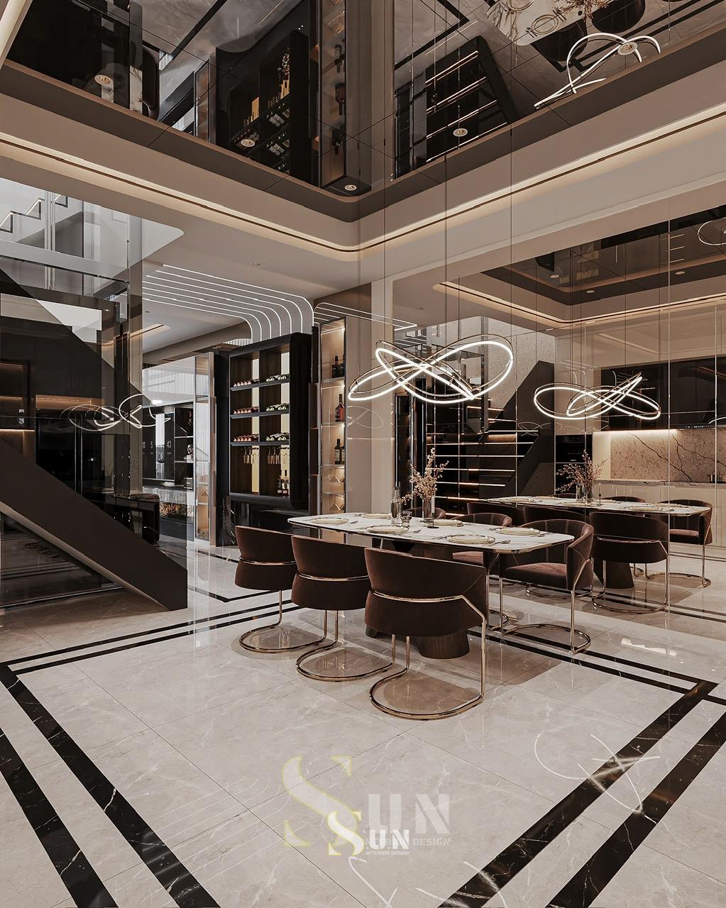 Sự phản chiếu của đẳng cấp: Nhìn lên trần nhà và thấy lại sự lung linh của ánh đèn, sự sang trọng của nội thất phía dưới tạo ra một cảm giác choáng ngợp và ấn tượng mạnh mẽ cho bất kỳ ai lần đầu bước vào.