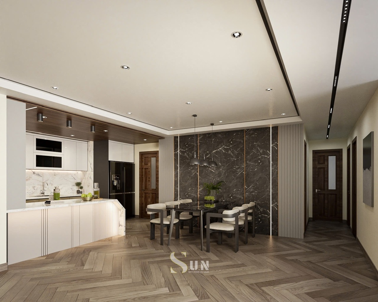 • Thẩm mỹ nhất quán: Một ngôn ngữ thiết kế chạy xuyên suốt từ khách, bếp đến ngủ.